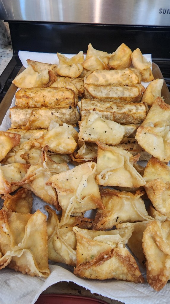 Crab ragoons and lumpias made by my babies😍