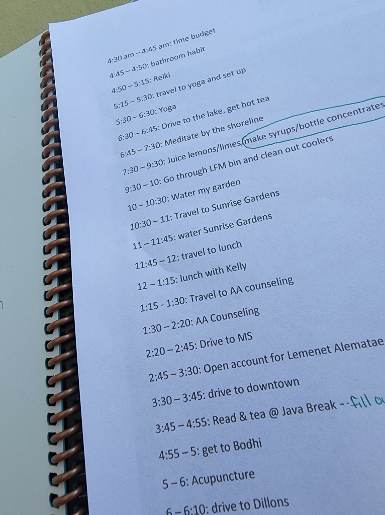 After I dress, I get in a meditation. Lately, I love a great prana bath in nature and a meditation while the sun rises. This is the best self-love I can present myself. This is my RX. I will also journal to wrap up my ah-mazing morning love fest.