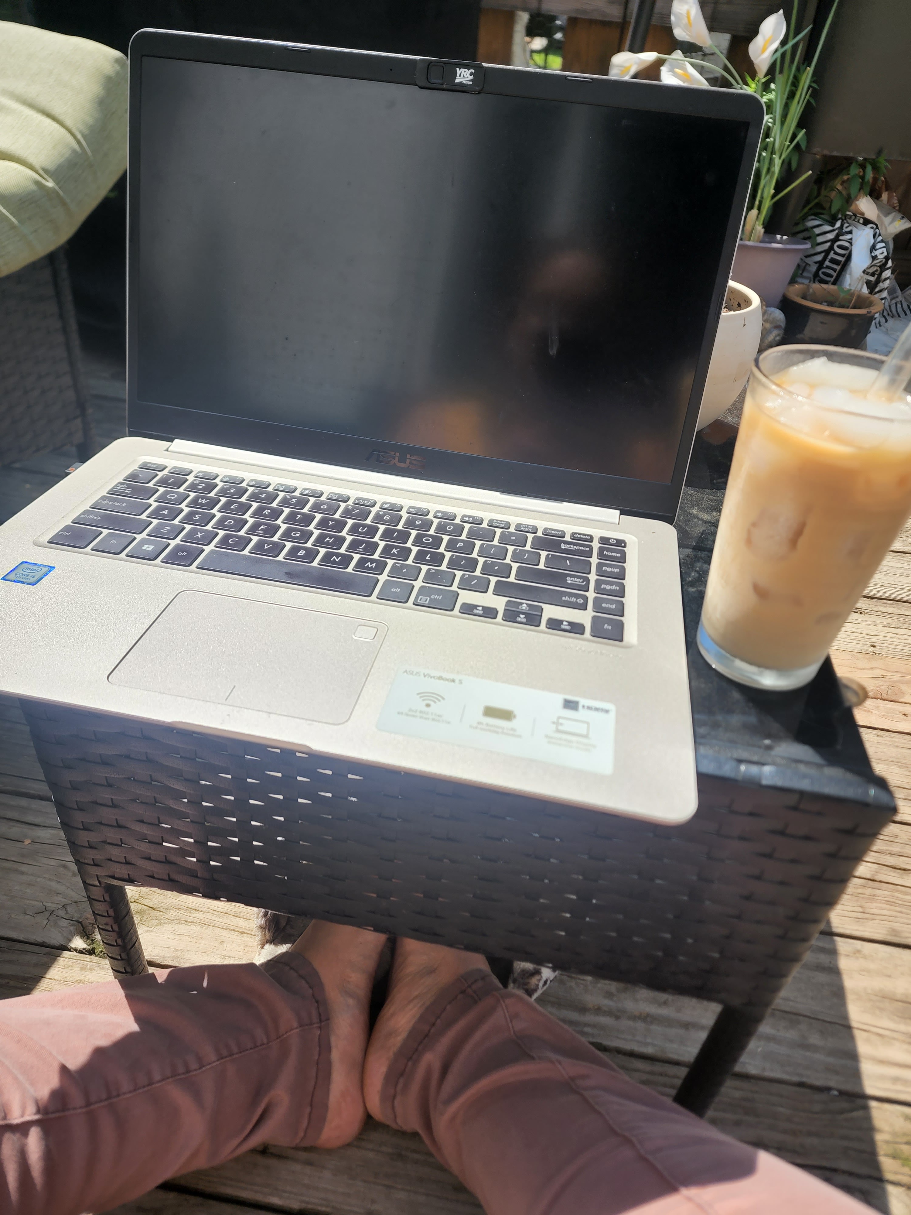 I will get my breakfast ready which has been cold cereal or yummy stewed apples lately. I also make myself my yummy chai cacao with Brahim/Gotu Kola and Moringa powder. These help me with my focus concentration. Another win! I typically begin work.