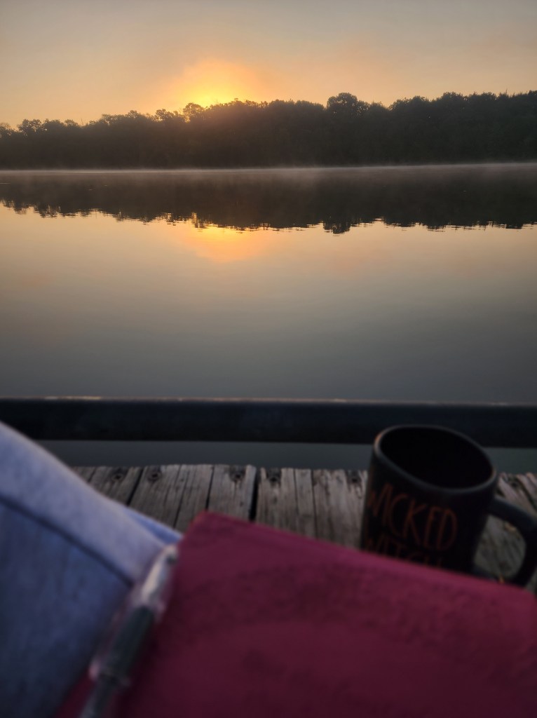 I will awake and spend time in bed stretching and gathering my morning plans in my head to get me prepared. Lately, I’ve been getting ready for a long nature meditation at the lake where I will journal and use my tarot cards. I enjoy my alone time to get my headspace right and get ready for work or my day depending on the day. I am working  up to 5 min of stillness. I truly enjoy this practice and it heals my soul. Deep healing.